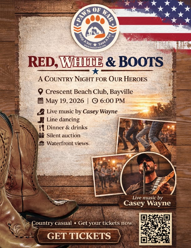 Paws of War celebrates our heroes with a night of country....Get ready to kick up your heels and celebrate the Red, White and Boots bash live and in person!.... Get ready for a night of country fun at Red, White & Boots, a lively evening benefiting Paws of War on May 19th from 6–10 PM. Guests will enjoy great country music, line dancing, dinner, drinks and a warm, welcoming atmosphere—all in support of our War Torn Program.....Come dressed in your best casual or country attire and join us for a memorable night filled with community spirit, entertainment, and purpose.....Every boot on the dance floor helps make a difference for the heroes Paws of War proudly serves. We can’t wait to see you there! Sponsorships are available (see flyer below).