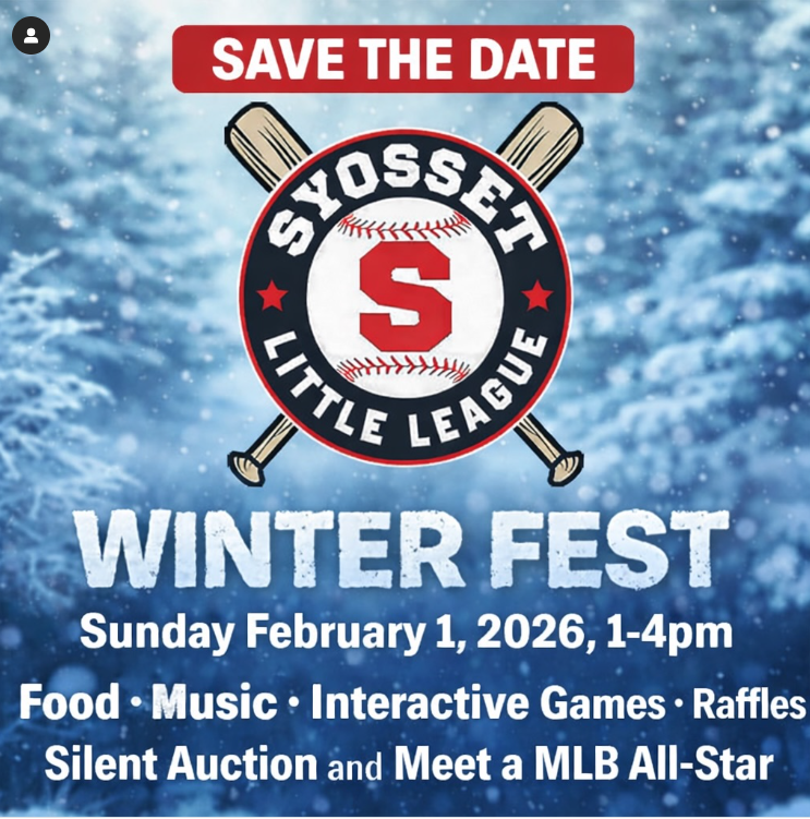 It may be cold outside, but we’re bringing the heat this winter ❄️🔥 Join us for the Syosset Little League Winter Fest—a fun-filled afternoon for the whole baseball and softball community with food, music, interactive games, raffles, a silent auction, and a meet & greet with an MLB All-Star.