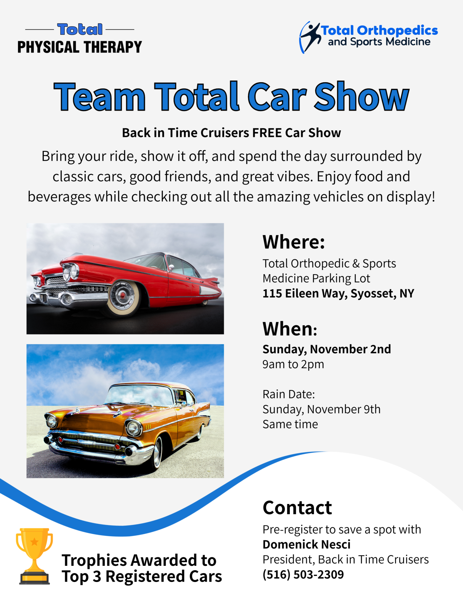 Bring your ride, show it off, and spend the day surrounded by classic cars, good friends and great vibes. Enjoy food and beverages while checking out all the amazing vehicles on display at 115 Eileen Way, Syosset. To reserve a spot, call 516-503-2309.